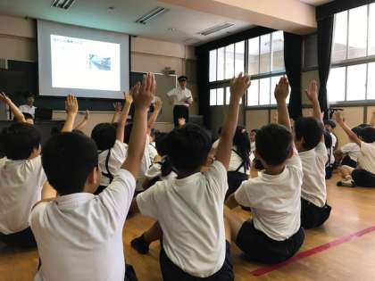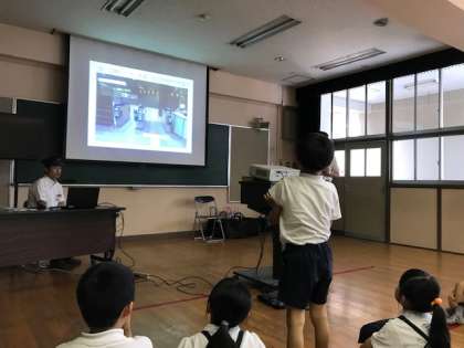 また、電車の仕事は、運転士さんや車掌さん、駅員さんだけでなく、安全を守るために点検や整備をされている方々によって支えられていることを知った2年生の子どもたちは、駅長さんの話に聞き入っていました。