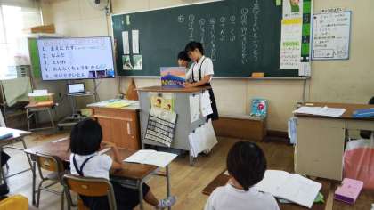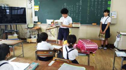 カブトムシやクワガタムシなどの夏の昆虫についての写真紙芝居を読んだチームや物語の紙芝居を交代しながら読んだチームもありました。