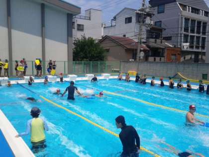 8日(月)、西区児童の体力向上支援事業で水泳インストラクター2名が来校され、水泳学習の支援をしてくださいました。