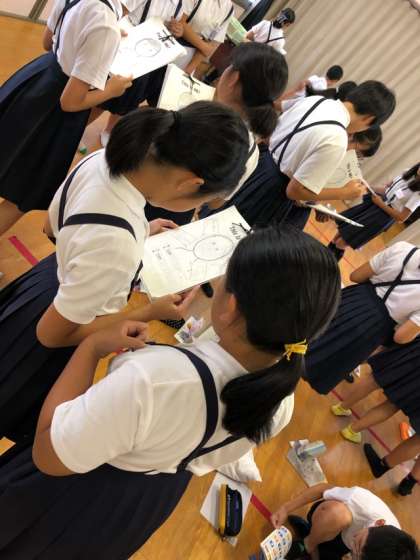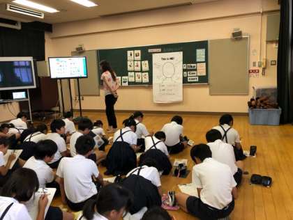 名前、誕生日、年齢、できること・できないことなどをワークシートに書きました。そのあと、友だちに自己紹介をしました。なかには、先生に自己紹介をしにいく子も・・・♪英語を楽しみながら、活動に取り組んでいました。