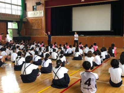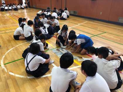 児童集会は、新聞をちぎってできるだけ長くするゲームをしました。各たてわり班で協力しながら、新聞をちぎりながらどんどん長くしていきました。2学期には「九条南キッズカーニバル」があり、たてわり班で絆を深めていってほしいですね。