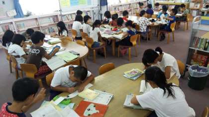 今朝は朝から雨が降っていて、夏休み初日の水泳指導はありませんでした。でも図書館開放には、朝からたくさんの子どもたちが集まってきました。