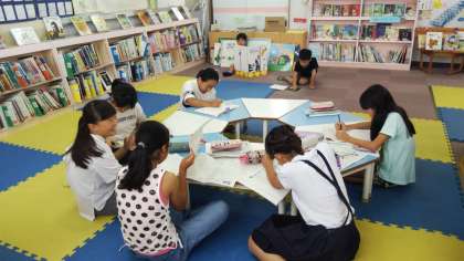 「読書感想文を書きたいですが、どんな本がいいですか?」「本の帯を作りたいので帯の画用紙をください。」など、みんな夏休みの課題をするために、はりきって来館していました。