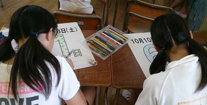 集会委員会では、運動会までのカウントダウンカレンダーを作成していました。