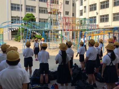 待ちに待った林間学習。子どもたちは35名全員元気に登校してきました。