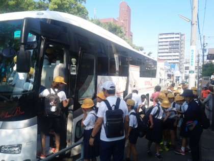 5年 林間学習 バスに乗車し元気に出発しました