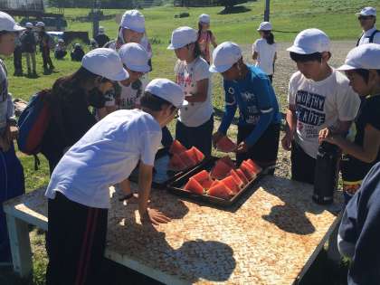 5年生 林間学習 山登りの後のおやつはスイカです