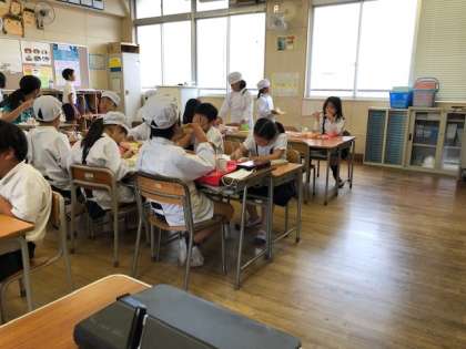 本日より給食もスタートし、子ども達は久しぶりの給食をおいしそうに食べていました。