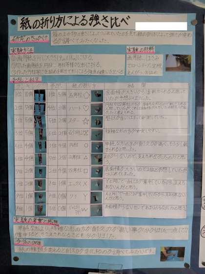 生活の中で不思議に思ったことを実験によって確かめたり、自分が興味のあることを調べてまとめたりと、工夫した研究がたくさんあります。
