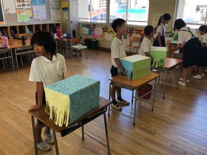 手で触って箱のなかみを当てるゲームです。全員正解目指して頑張りましょう!