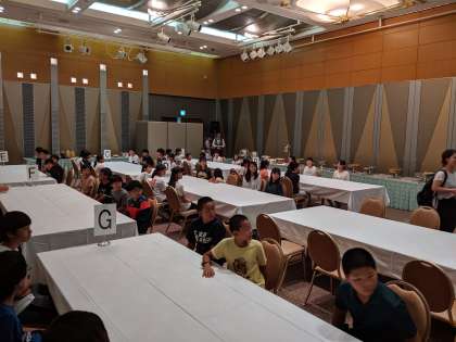 まちに待った晩御飯。立派な宴会場に、たくさんのお料理。