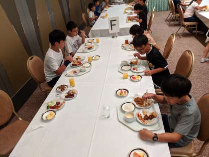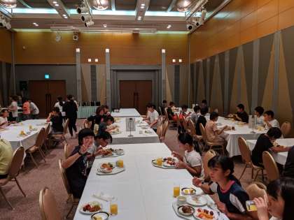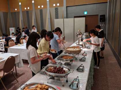 唐揚げ、焼そば、肉だんごにサラダ等など、何度もおかわりして、もりもり食べてます。