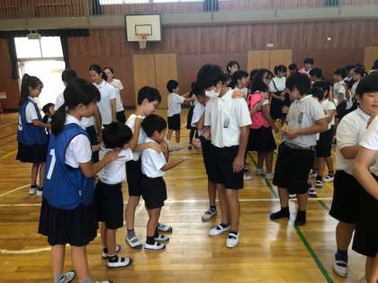集会委員による児童集会は「じゃんけん列車」でした。1年生から6年生まで、いろいろな学年の人と楽しく交流し、全校オリエンテーリングに向けて絆を深めています。