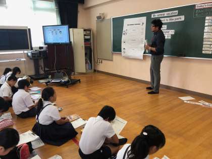 1・2年生のフォニックスでは、アルファベットの音について勉強し、先生の真似をし発音することができていました。5年生のビンゴゲームでは、英語で質問をすることができていました。6年生の友だちと話そうの交流の場では、英語につまづいている時もありましたが、しっかりと相手の話を聞き自分のことを伝えることができていました。