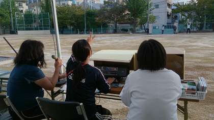 運動会にむけた職員作業(サウンドチェック・入退場門設置等)