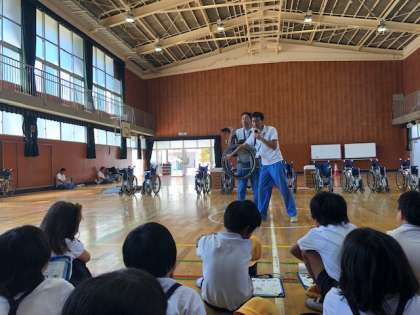 大阪市立心身障がい者リハビリテーションセンターのスタッフの方が来校し、3年生に「車いす体験講習会」を行なってくださいました。