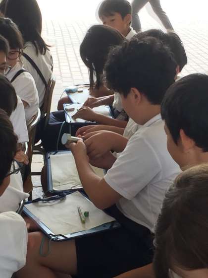 5年生の総合的な学習の時間は、ねじの旅です。社会科で工業生産を支える人々について学習していますが、自分たちの身の回りにも社会を支える工業生産に携わっている方がたくさんいることに気が付きました。今日は地域の方々に来ていただき、九条南のねじ産業について詳しく教えていただきました。「なぜ九条でねじの産業が盛んになっていったのか。」「ねじはいつどこで作られたのか」「ねじのギザギザには数が決まっているのか」など事前学習で浮かんできたたくさんの疑問を解決することができました。今日の学習をから次回工場見学を通して、さらにねじのことを調べていきたいと思います。