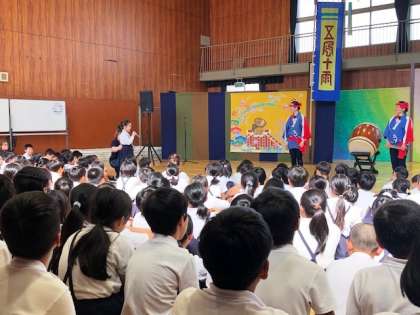 講演後は、6年生の児童代表の挨拶がありました。各学年の児童も、普段見れないようなさまざまな芸能を鑑賞することができ、興奮が胸いっぱいに広がったようで、たくさんの感想を語っていました。