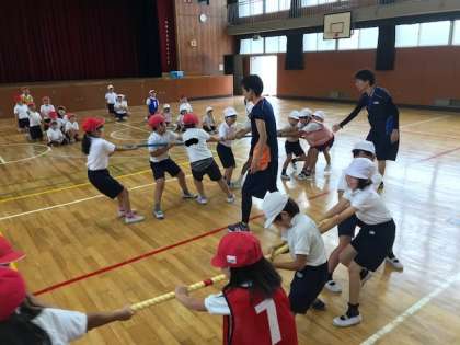 後半には、チーム対抗で「棒引きと綱引きを合わせたようなゲーム」をしました。