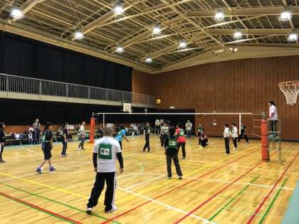 20日(日)、本校体育館で「第27回 九条南連合町会対抗バレーボール大会」が盛大に開催されています。