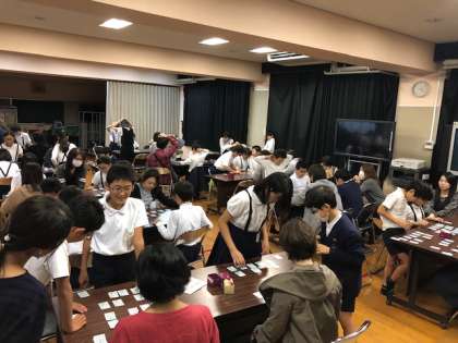 5年生は国語科で「古文を声に出して読んでみよう」という学習をしています。学年集会のはじめに今まで暗唱してきた古文の冒頭部分を発表しました。「平家物語」や「竹取物語」「枕草子」などスラスラと暗唱することができました。今日の集会は百人一首です。少しずつ上の句と下の句を覚えてきました。おうちの人や友達との対戦で大盛り上がりでした。ぜひおうちでも百人一首を楽しんでみてください。