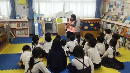 地域読書ボランティア「よもよも」の皆さんによるお話会がありました。
