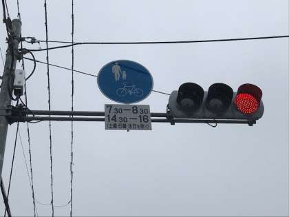 本校正門前の道路(学校前信号〜福音幼稚園前信号)は、午前7時30分〜8時30分、午後1時〜3時に通行規制がかかっており、車両通行禁止となっていましたが、児童の下校が通常5校時終了後の午後2時35分以降となることから、児童の下校時間帯に合わせて、午後2時30分〜午後4時に変更してもらうよう去年12月から警察に申請していました。