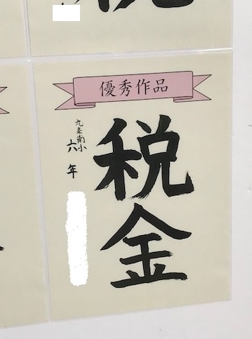 土佐公園には、本校6年生の税に関する習字の作品が展示されています。