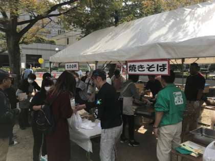 土佐公園には、各地域団体のフードコーナーがにぎやかに並んでいます。九条南地域は焼きそばのフードコーナーを運営されています。