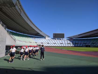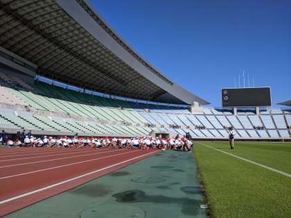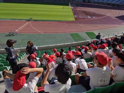 長居のヤンマースタジアムで、西区8小学校のスポーツ交歓会です。