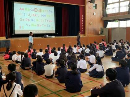 English Timeでは、「the alphabet song」をみんなで歌いました。アルファベットのカラーに注目し、学年ごとに言うアルファベットを分担して歌いました。
