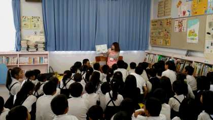 10月のよもよもお話会がありました。月に1度のお話会。いつも、図書ボランティア「よもよも」の皆さんに行っていただいています。
