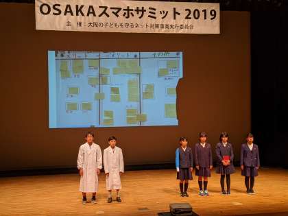 次は、6年生の取組「めざせ!スマホマイスター」について報告しました。劇やクイズを交えながら、総合的な学習の時間にみんなで取り組んでいることや、保健委員会のアンケート調査の報告などを行いました。