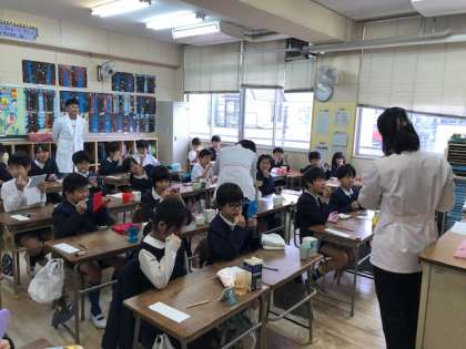 4年生では、歯みがき指導及びフッ化物塗布を行いました。