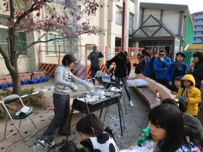子どもたちは、昔ながらの臼や杵を使った餅つきを楽しんだり、つきたてのお餅を堪能したり、温かくて美味しいうどんやぜんざい、焼き芋を食べたりと大満足です。