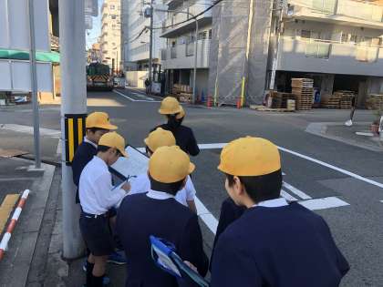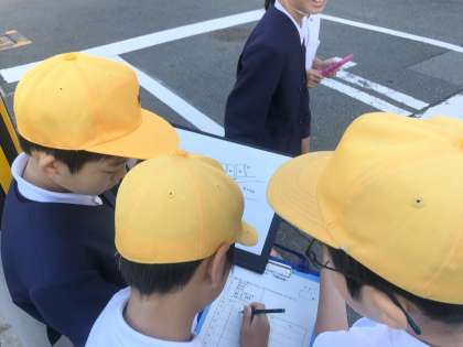 4年生は、総合的な学習の時間に「身の回りの安全を考えよう」というテーマで学習をしています。その学習の一環として、昨日は校区でフィールドワークを行いました。事前に学習した危険ポイントと照らし合わせながら、危険な場所はないかをグループで調べてまわりました。途中で地域の人にインタビューも交えながら、自ら考えて行動する子ども達の姿が見られました。今後は、このフィールドワークで調べたことをもとに、交通安全マップを作る予定です。