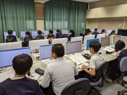 6年生は、国語の授業で、今、物語を書いています。ノートに書いた構想をもとに、文章を考え、まずは下書きをしてきました。今日はそれをもとにパソコンに打ち込みながら、校正していました。