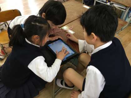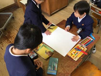 昔あそびをたくさん練習して、名人になってきた1年生!名人になったあそびを広めたい!という思いを持ち、「となりのクラスのお友だちに伝えよう」を目標に準備をしています。ポスターを作ったり、タブレットに写真をはって文字を入れたり、好きな方法で遊びについて考え、まとめています。学年発表会は来週の予定です。