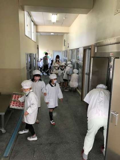 今日も、「いただきます」と感謝の気持ちを込めた元気いっぱいのあいさつが給食室に響いていました。「2学期最後の給食いっぱい食べよ。」と笑顔で言いながら子どもたちは教室に向かっていました。