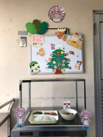 残念ながら、3クラスはかぜ様疾患による休業で食べることはできませんでしたが、今日も給食調理員さんが心を込めた美味しい給食を準備してくださいました。