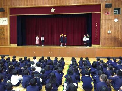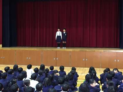 今日の児童集会で、2学期に行えなかった第2部の発表をしました。