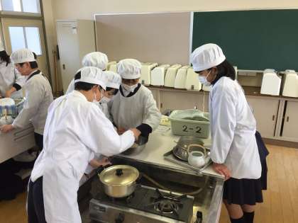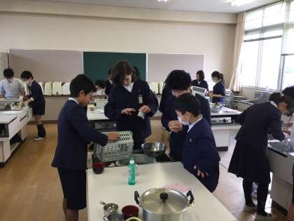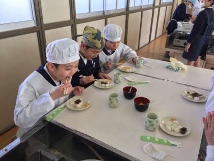 今回の調理実習は、「家族とほっとタイム」家族とのだんらんの時間をつくろうでした。簡単においしいお菓子をつくって家族みんなとのだんらんの時間をつくるために、今回は白玉団子と日本茶を準備しました。前もって事前の準備や調理を手際よくおこない、白玉団子を食べながら友だちとの楽しいだんらんの時間を過ごしました。もちもちの白玉団子にきな粉やあんこをつけて食べるとみんなにこにこでした。