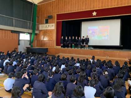 全校朝会の後、図書委員会の発表がありました。