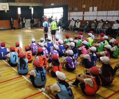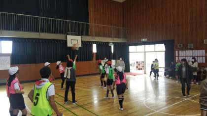 前半は保護者の方々とともにバスケットボールで交流会です!保護者の方々がチームに加わり、子どもたちは、いつも以上に張り切って試合をすることができました。