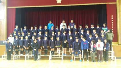 第2部は、お世話になった教職員の皆さんに6年生からメッセージを伝えました。そして、4年生の時にNHKホールで歌った思い出深い曲「Can do 君が輝くとき」を披露し、最後に記念撮影をしました。この6年間、教職員の皆さんとのいろいろな思い出がたくさんありましたね。