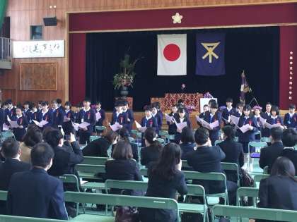 その後、台本をもって簡略化した呼びかけ・合唱を行い、式を終えました。