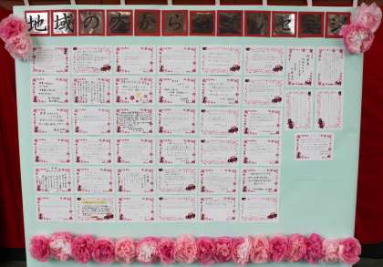 卒業式実施に当たって、今年度は、地域、PTA役員・運営委員の皆様のご臨席をお断りすることとなってしまいました。その際、急なお願いではありましたが、子どもたちに一言メッセージを寄せていただきたいと、案内に用紙を同封しましたところ、たくさんの方が子どもたちのために、お祝いや激励のメッセージをくださいました。
