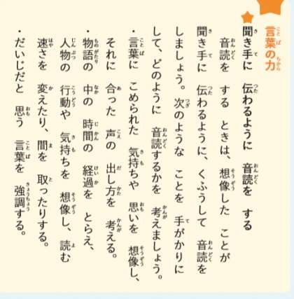 どんなことに気をつけて音読をすればいいのか、教科書の25ページの【言葉の力】を参考にして考えてみましょう。