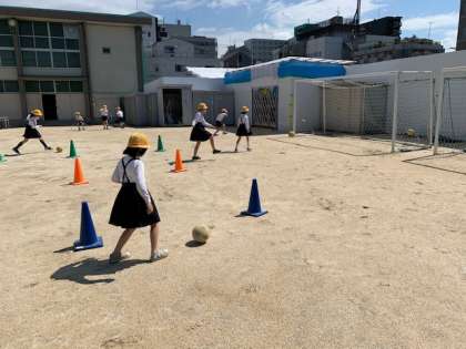 今日は、音楽担当の鶴賀先生のお話があったり、学級目標を考えたり、ボールを蹴って体を動かしたりしました。次の登校日は22日(金)です。楽しみに待っています。