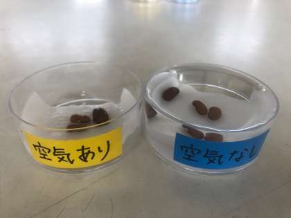 ただし、「空気なし」の方には、水をたっぷり入れ、種子が空気にふれないようにしています。